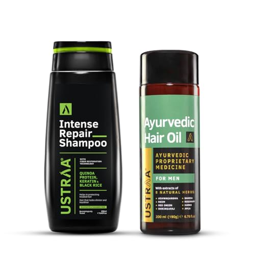 Ustraa Indian Hair Care Kit - Ayurvedic Hair Oil - 200 ml | 8 Natural Herb Extracts & Intense Repair Shampoo - 250 ml | Fiber Restoration Technology | Helps Restore Hair Bonds | Keratin