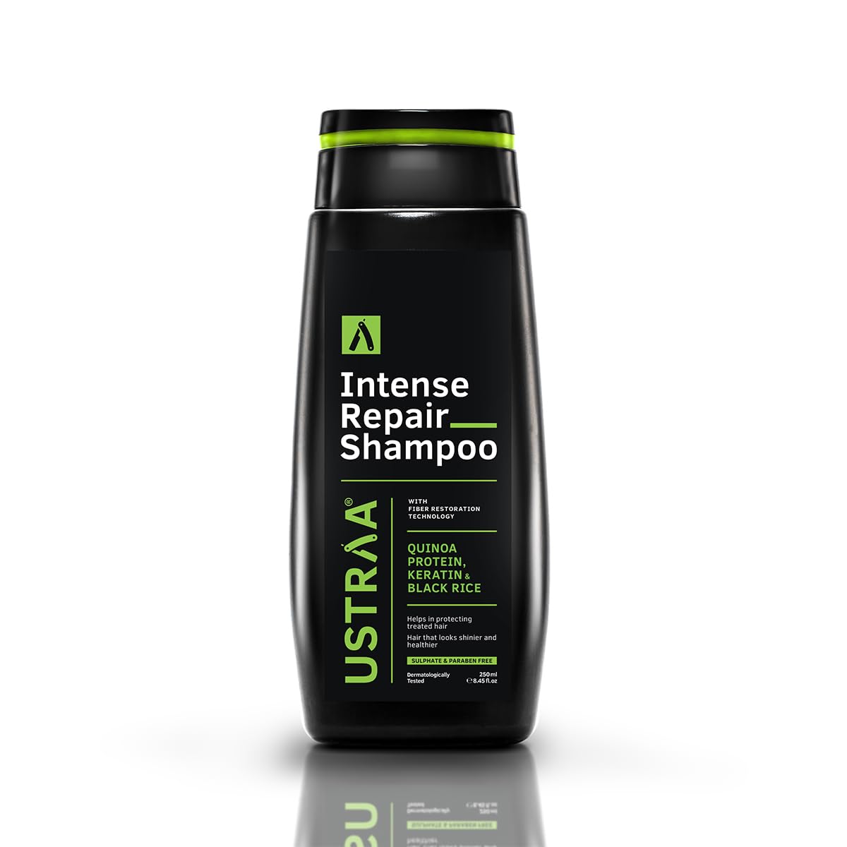 Ustraa Intense Repair Shampoo - 250ml - with Fiber Restoration Technology | with Black Rice & Keratin | Helps Protect Treated Hair | for Shinier & Healthier Hair | NO SLS NO PARABEN