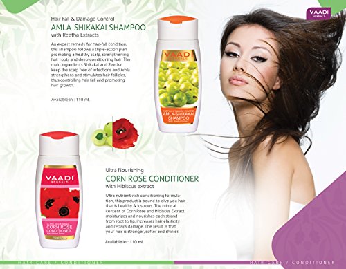 Vaadi Herbals Amla Shikakai Hair fall and Damage Control Shampoo, 110ml with Corn Rose Conditioner, 110ml
