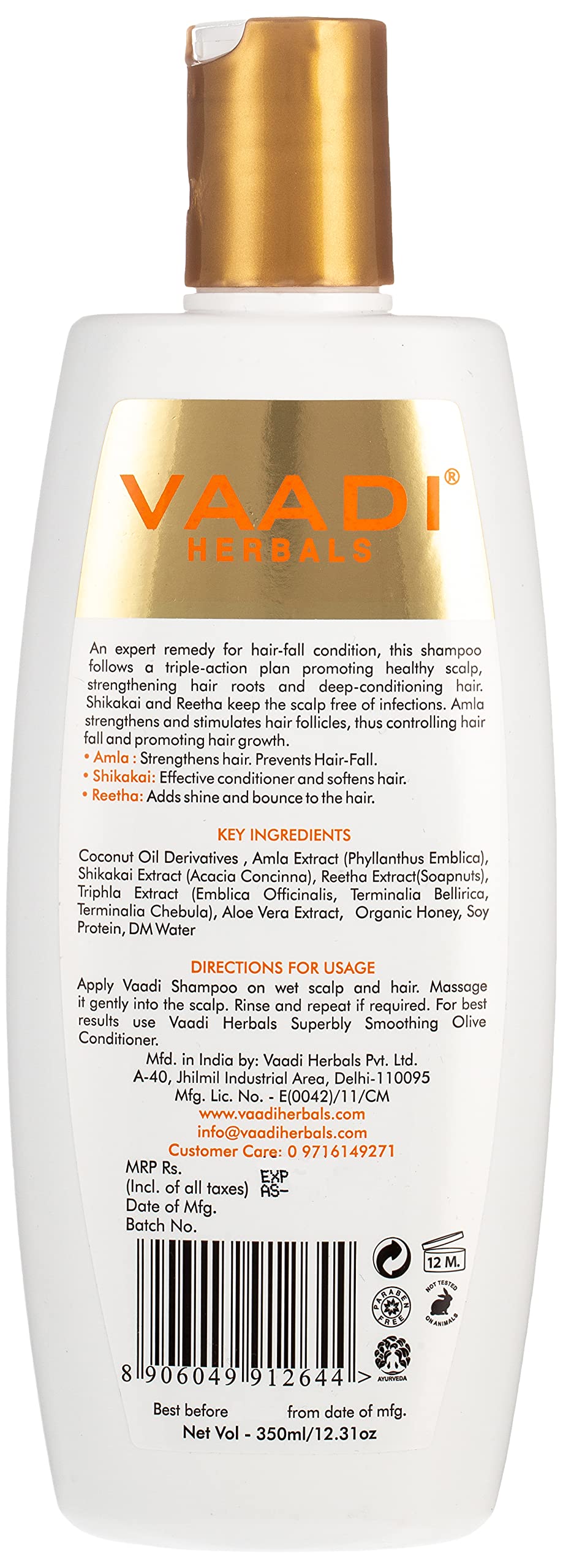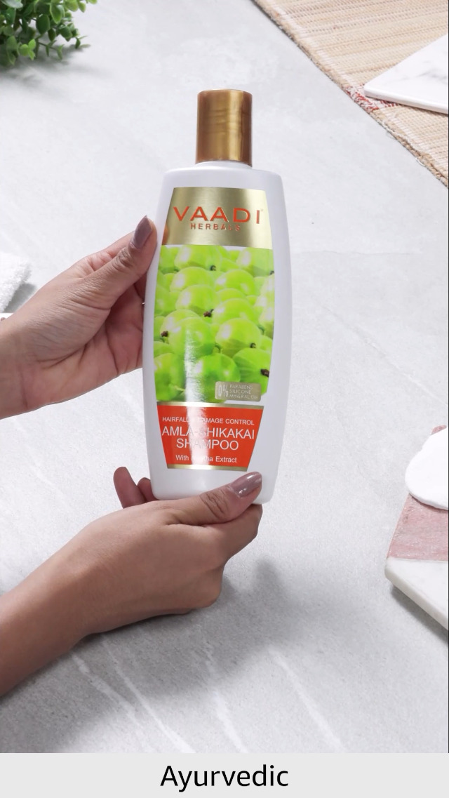 An expert remedy for hairfall condition this shampoo follows a tripleaction plan promoting healthy scalp strengthening hair roots and deep conditioning hair. Shikakai and reetha keep the scalp free of infections. Amla here strengthens and stimulates hair follicles thus controlling hair fall and promoting hair growth.A gorgeous mane always catches the beholder's attention. For everything ever written in literature about beauty the locks have a romanticism of their own. Everyday hectic life takes a toll on hair when one has no time to take care of them. With the sun's UV rays forever shining on the locks damage is bound to happen. Also wind takes off the moisture and makes hair frizzy and fragile prone to breakage and a plethora of hair related problems like dandruff itching and thinning furthermore elevate the stress levels. It's a cycle. The more the stress the larger the effect on hair and skin in general. We tend to buy into what products in the market claim without paying attention that after all it is chemicals we are feeding our dying hair. Natural ingredients on the other cleanse hair without harming the hair follicles and nourish them for a better growth and glossier look. Why is Amla known to be the best solution for scalp conditions?Indian gooseberry or Amla is known as the magic ingredient for all hair related problems in Ayurveda. No other herb is known to have this miraculous effects than Amla. Over the time when the hair have been damaged to a large extent hair follicles tend to lose the strength. This makes hair brittle prone to breakage and even premature aging. Amla reaches deep in the scalp and nourishes hair follicles enabling them to resume their regular functions. This prevents hair fall and your mane bounces with health. Amla is extremely rich in Vitamin C which makes it an excellent exfoliating agent. Amla cleanses the scalp like no other making way for essential oils and other nutrients to get to the hair follicles. Being anti-bacterial and anti-inflammatory in nature Amla prevents scalp conditions from being aggravated and nips them in the bud. From soothing and calming the mind on the inside Amla treats split-ends and provides natural shine and luster by rejuvenating dull and damaged hair. Amla also takes care of chemically treated hair as it does not allow free radicals to effect the air thanks to its anti-oxidant nature. How does Shikakai benefit the hair? A proper cleansing for the hair is always talked about but another aspect of hair care which is equally important is conditioning. Hair after effective exfoliation tend to lose moisture and this makes them dry lifeless lack-luster and frizzy. This sort of hair is unmanageable and looks equally wild. Shikakai tames wild hair and instils in them the beauty that will catch everyone's attention. Literally meaning 'fruit of the hair' Shikakai is an all natural herb that is capable of deeply conditioning the scalp and provide that touchable softness to the hair.Taking care of oil regulation in the scalp Shikakai works wonders for hair. Without stripping the hair of the natural oils Shikakai cleanses tames the texture and provides the necessary nourishment to bring about that sheen bounce and life back in your hair. Having a low pH Shikakai is mild on the hair and efficient enough to eliminate lice and tackle dandruff.Why do hair experts swear by Reetha for a beautiful mane? With season changes and a careless lifestyle the hair are bound to fall prey to damaging factors and infections. Sapindus mukorossi or commonly known by its household name Reetha is an excellent solution to that gorgeous mane everyone would be envious of. Reetha can be called a scalp guard as it does not allow dandruff lice or any kind of hair infections to attack you. The nutshell of Reetha contains saponin which has soap-like properties. This helps in effective cleansing. With scalp conditions at bay the hair grows properly and is shinier more beautiful and manageable. Reetha makes hair softer to touch and pleasing to look at. Reetha's insecticidal properties do not let microbes to persist on the hair. Hair boom in shine with pampering from this natural herb Reetha.