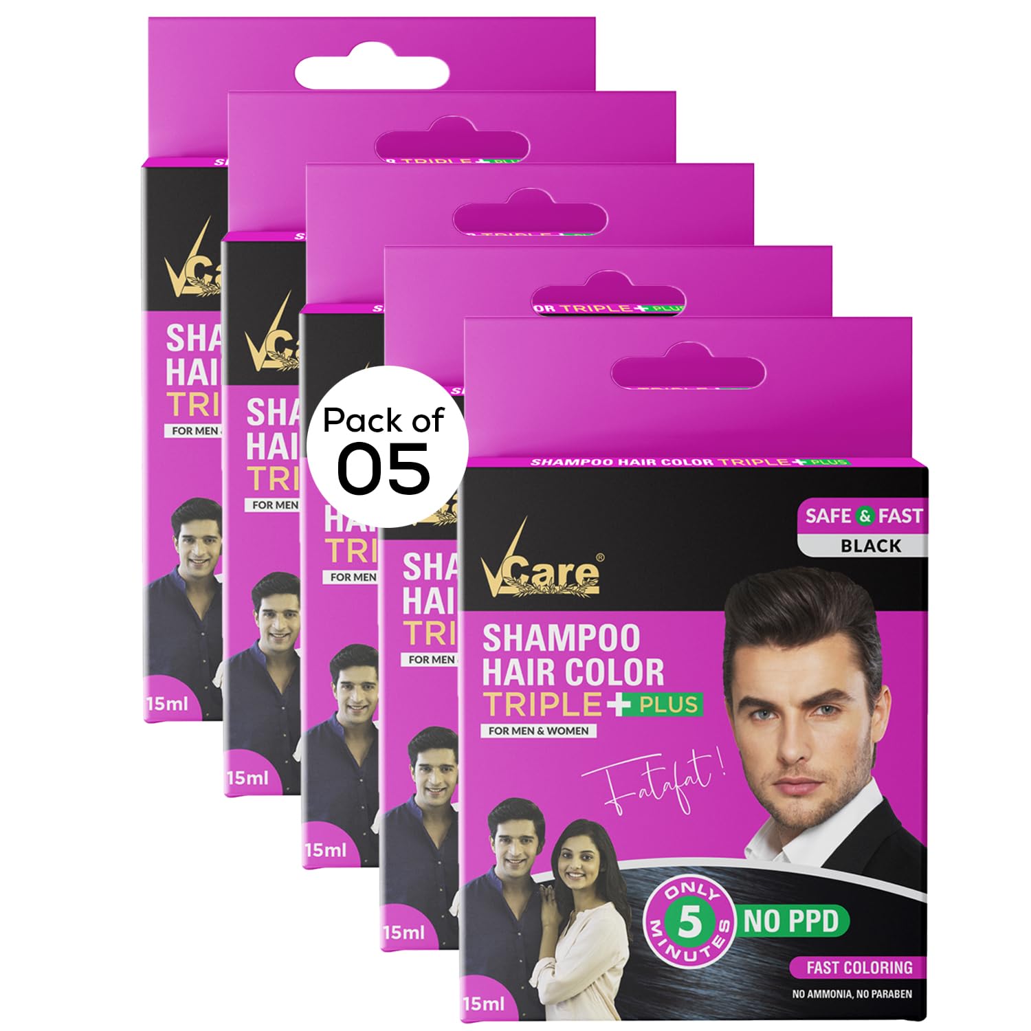 Vcare Shampoo Hair Color Black 25ml-Colors and deeply nourishes your hair-Enriched with growth factors & antioxidants Ammonia free Sulphate free (Pack of 5)