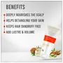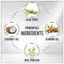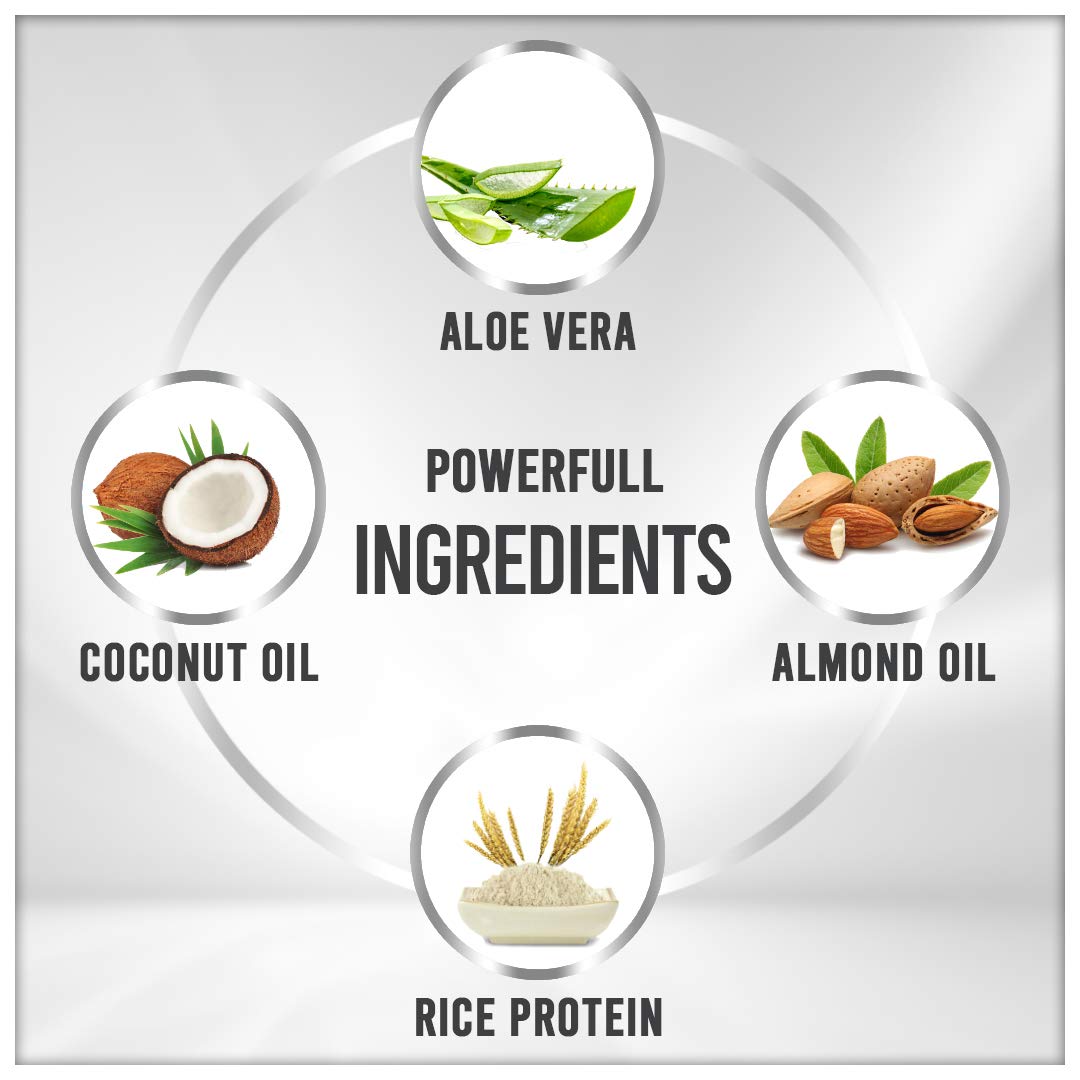 Dethe goodness of coconut oil aloe vera almond oil and rice protein strengthens hairs strengthen weak roots gand infuse the scalp with protein.