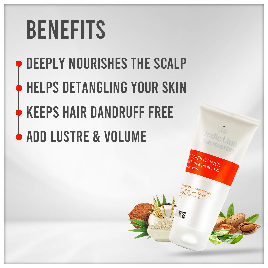 Vedicline Hair Masters Conditioner with Rice Protein Reduce Dull Dry & Frizzy Hair with coconut oil Almond oil Aloe Vera for Healthy Nourished Hair 200ml