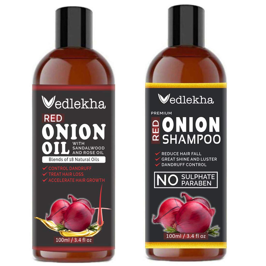 Vedlekha Premium ONION Hair oil and Shampoo Combo pack of 2 bottles of 100 ml (2 Items in the set)