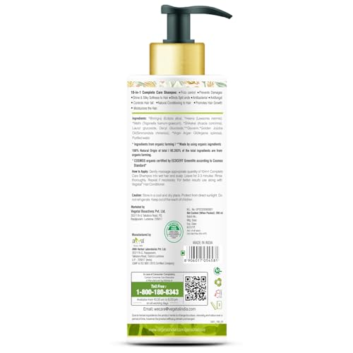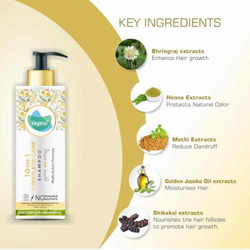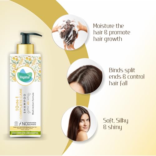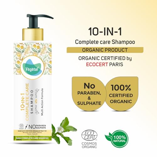 Vegetal 10 in 1 Shampoo for Dry and Damaged Hair- 200ml (Sulphate & Paraben Free Certified Organic Shampoo for Men & women)