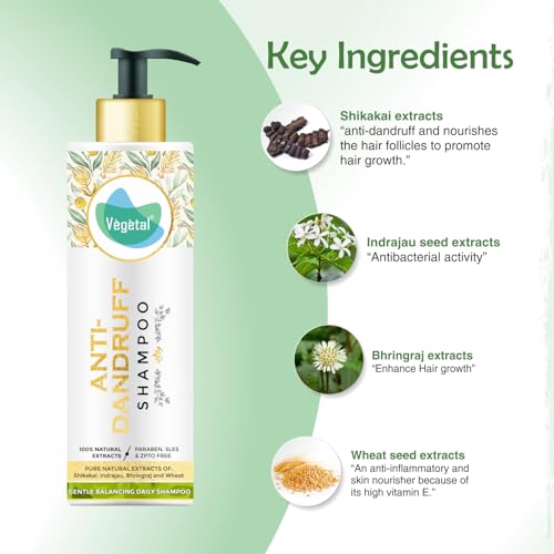 • Vegetal Anti-Dandruff is a compilation of natural ingredients with a blend of modern techniques. It is a 100% natural Bio-Actives anti-dandruff shampoo which is free of ZPTO Parabens SLES and other harmful chemicals.