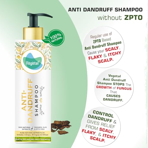 . Bioactive extract of Shikakai & Wheat 2. Reduces dandruff falling and greying of hair 3. provides relief from Itchy and Irritated Scalps 4. 100% Bio-natural extracts 5. All Hair types Vegetal Anti Dandruff Shampoo is blend of anti-dandruff cleansing and nourishing extracts like shikakai having anti-dandruff activity and promote hair follicle. Indrajau extract is enriched with natural saponins that has natural cleansing effects and hair looks silky and smooth. It also enriched with Vit.E of wheat seed for rejuvenation of hair and keeps your hair look moisturized while averting dryness. Bio-pharma active ingredients: Acacia concinna (Shikakai) fruit extract: Rich source of Saponins vitamin C & D and other micronutrients that provides anti-dandruff and nourishes the hair follicles to promote hair growth. Holarrhena antidysentrica (Indrajau) seed extract: Contains flavonoids which is responsible for Antibacterial activity Eclipta alba (Bhringraj) plant extract: Enhance Hair growth Triticum sativum (Wheat) seed extract: An anti-inflammatory and skin nourisher because of its high vitamin E. . Usage: Reduces flakes Itching Hair fall and Prevent the recurrence of dandruff Direction of Use: Gently massage appropriate quantity of Vegetal antidandruff shampoo into wet hair and scalp. Leave for 2 - 3 minutes. Rinse thoroughly. Repeat if necessary. For better result use along with Vegetal Hair Conditioner. Net Wt.: 200ml Ayurvedic Proprietary Medicine Store in a cool and dry place keep it away from direct sunlight. Do not refrigerate. Keep out of the reach of children