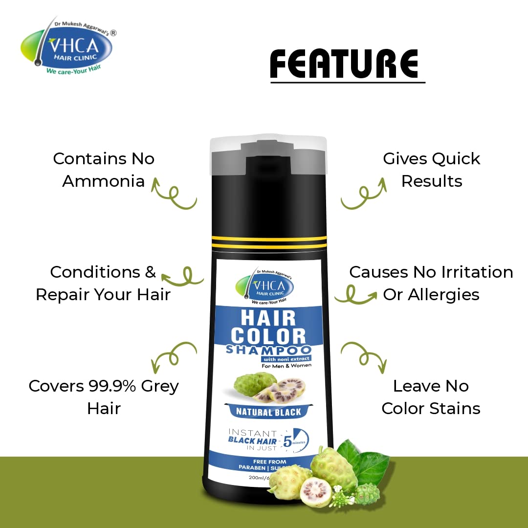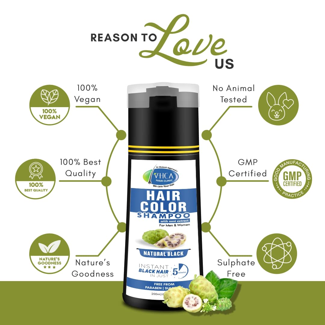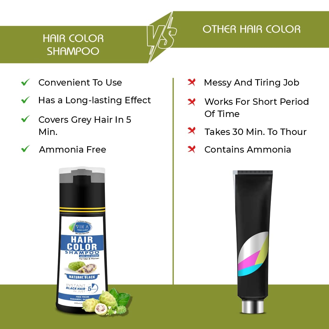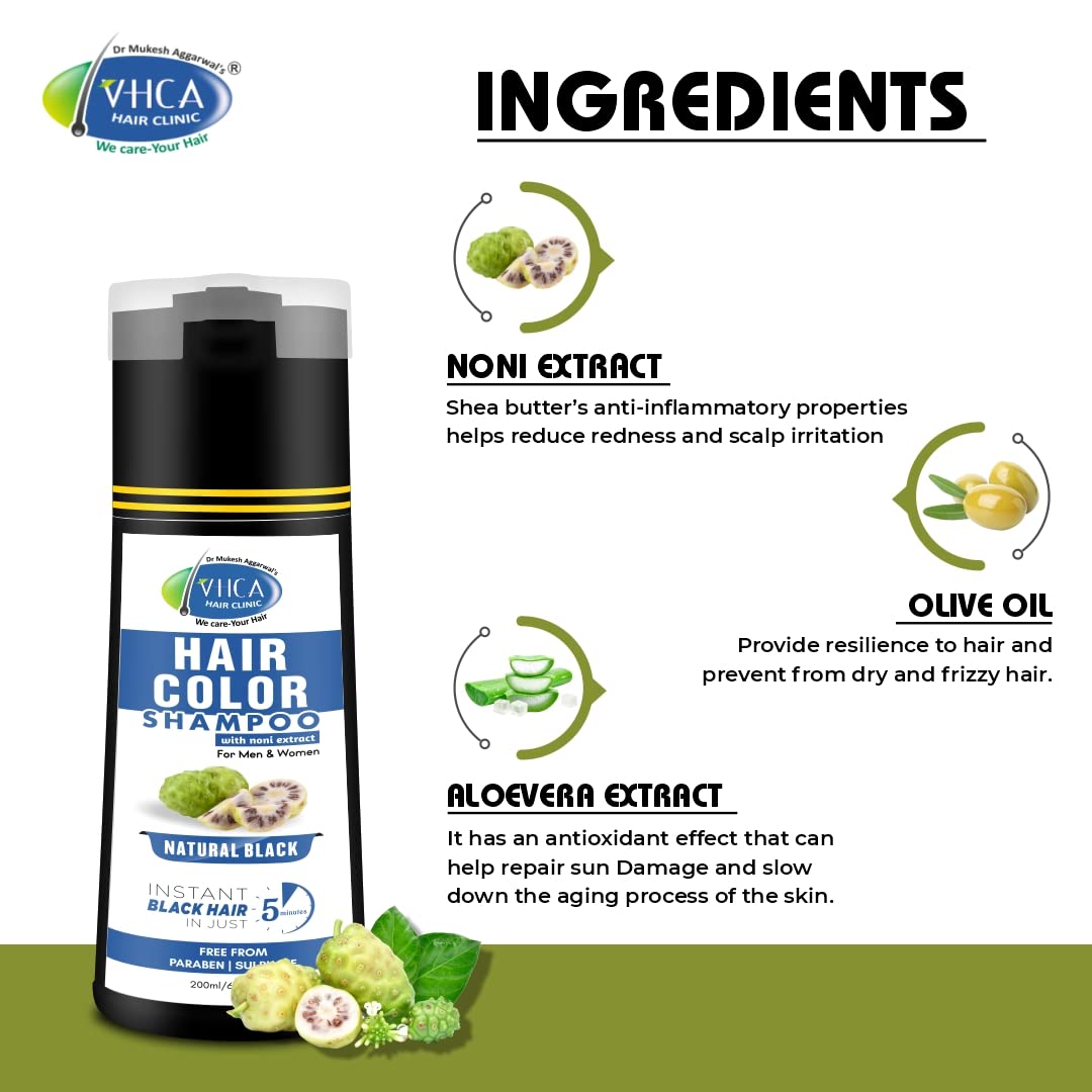 VHCA Beard Color Shampoo For Men Black | Black Hair Color Shampoo | Hair Color Shampoo For Men Women Boys Girls | (200ml)