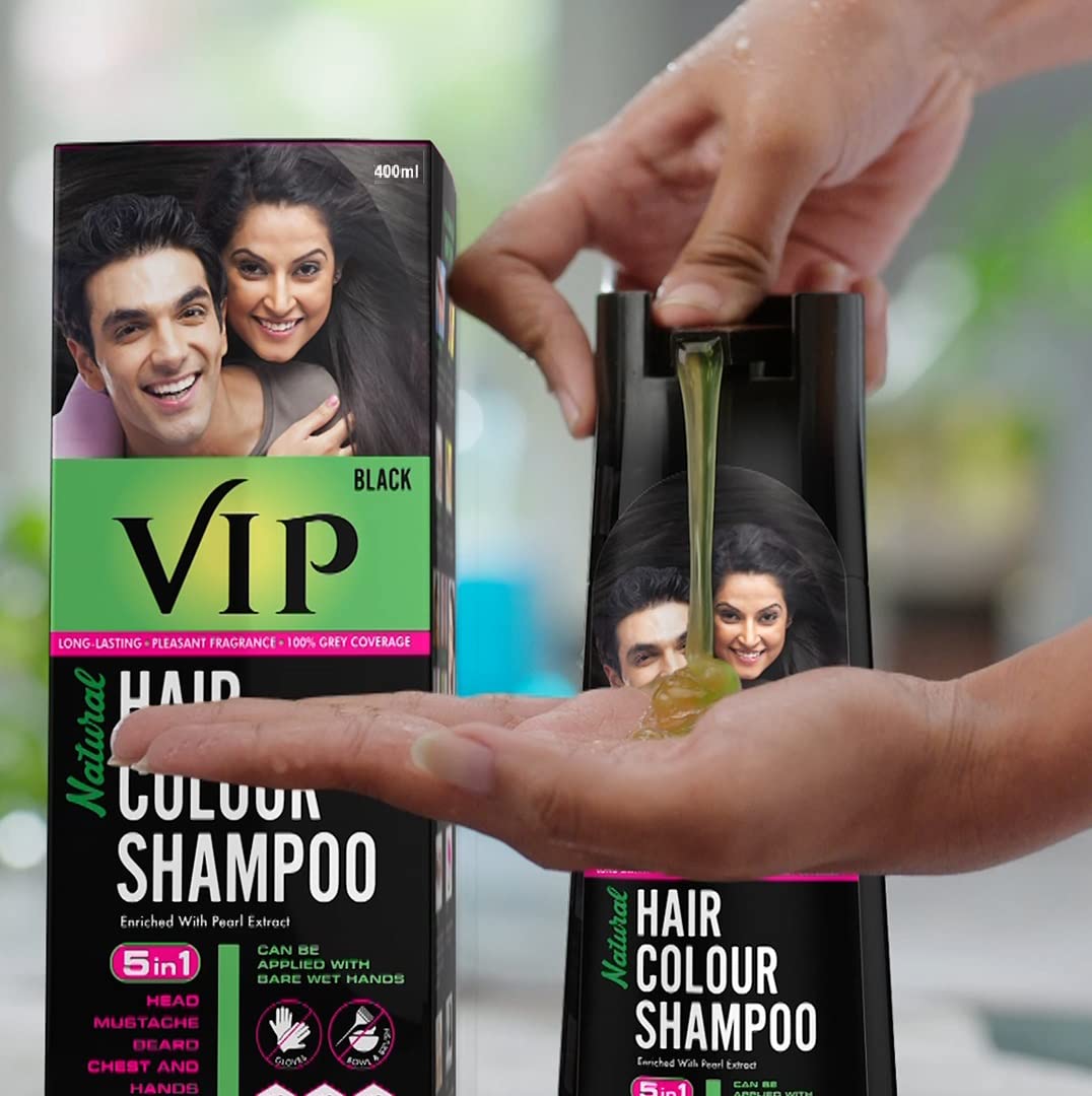 VIP Hair Colour Shampoo 400ml Black | Ammonia-Free | Family Pack | Quick 5-in-1 Grey Coverage for Men & Women | Long-Lasting Natural Black Shine