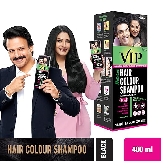VIP Hair Colour Shampoo has revolutionized the way to color your Hair, Moustache, Beard, Chest Hair and Hand Hair.