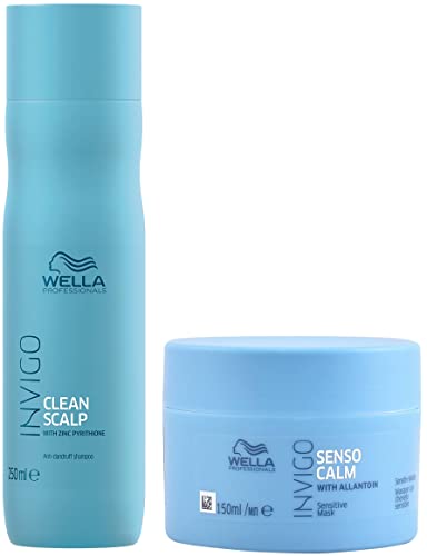 WELLA Professionals Invigo Balance Senso Calm Unscented Sensitive Mask, 150 Ml & Invigo Balance Clean Scalp Anti Dandruff Shampoo For All Hair Type, 250 Ml, 2 Count