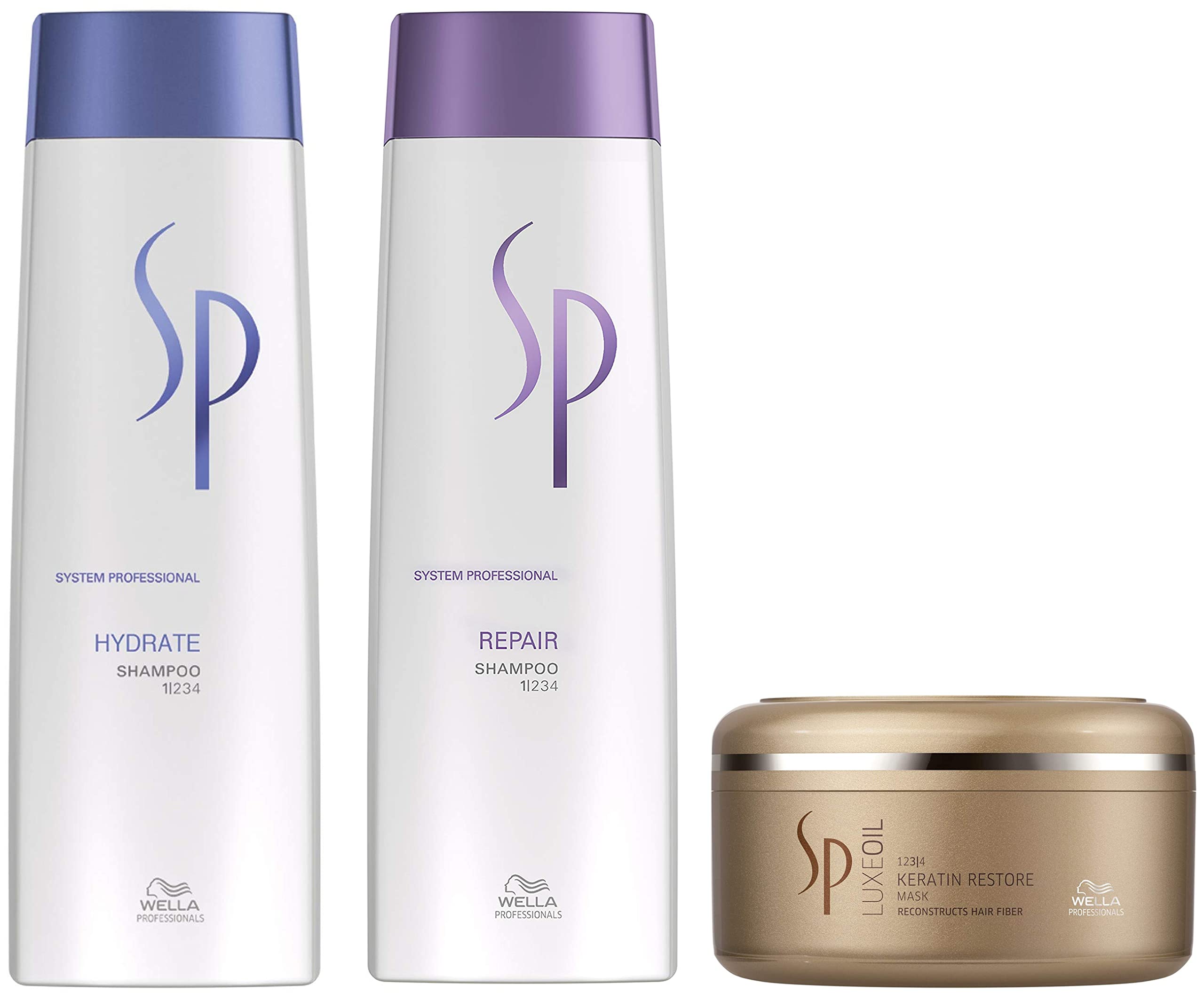 Wella Professionals LuxeOil Keratin Restore Mask 150ml & WELLA SP Repair Shampoo For Damaged Hair 250ml & Wella Professionals Hydrate Shampoo (For Normal to Dry Hair) 250ml