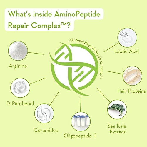 5% AMINOPEPTIDE REPAIR COMPLEX - Our proprietary patent pending complex with L-Arginine Lactic Acid Ceramides Sea Kale Extract Hydrolyzed Hair Proteins Oligopeptide-2 & D- Panthenol helps to repair all hair layers and bonds