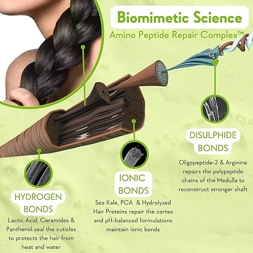 BIOMIMETIC RECONSTRUCTION : This shampoo has amino acids and polypeptide chains which mimic the polypeptide structure of hair and act as natural fillers for damaged hair thereby naturally reconstructing the hair strands