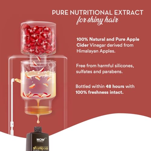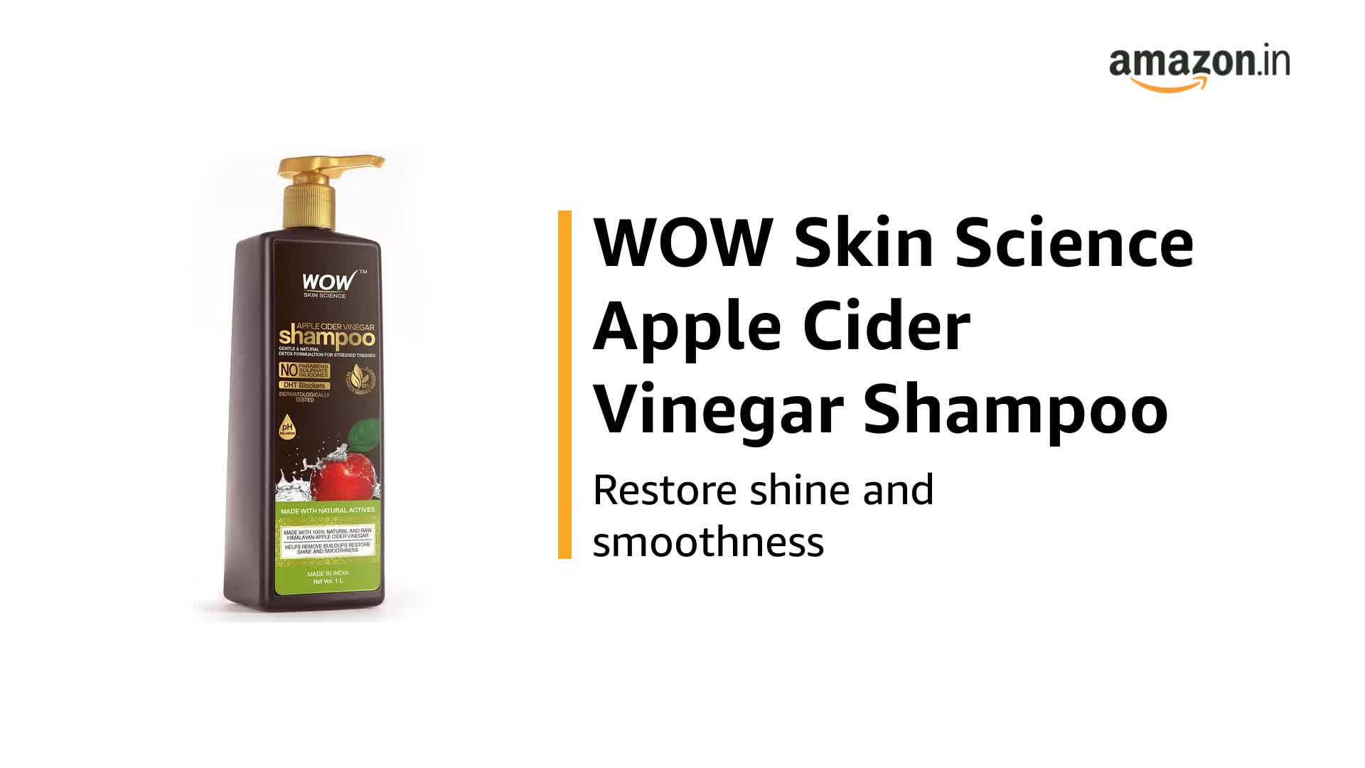 WOW Skin Science apple cider vinegar gentle & natural detox formula for stressed tresses removes buildups. Restores shine & smoothness. Made with natural apple cider vinegar. Enhanced with pure apple extracts. Ecocert certified bioactive haircare contains no sulphates or paraben undo the everyday damages heaped by styling products and dusty pollution on your hair and scalp. Cleanse your crowning glory with wow apple cider shampoo that comes powered with organic and pure apple cider derived from Himalayan apples. Softly scented with natural apple extracts this sweet smelling shampoo gently clears up all buildups to let your scalp breathe free and to leave your hair naturally smooth and shiny. To use: wet hair. Pour a generous dollop on the palm. Massage well into soaking wet hair and scalp using fingertips. Work up a rich lather. Rinse thoroughly.