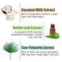 Coconut milk is a well-acclaimed super-food with tremendous nourishing goodness. It has been used for hair care since ancient times across south east Asia and Polynesia. Being rich in key nutrients which are beneficial for hair care such as lauric acid vitamin e phosphorus iron magnesium and copper it strengthens the hair roots repairs the hair shafts promotes the production of color pigments and smoothens down the rough cuticles to ensure that your hair looks and feels much softer much healthier. Nettle leaf and saw palmetto extracts are two natural and acclaimed blockers used by traditional healers in Europe and north America for centuries for hair loss and for stimulating hair growth. These two work together to boost blood supply to the hair roots which helps reduce hair fall. And they have been known to gradually transform the thinning hair into a thick and glossy mane.