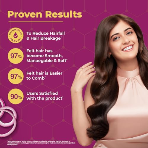 Detangled Frizz-free and Strenghthened Hair with WOW Skin Science Onion & Collagen Anti-hairfall Conditioner. It conditions and nourishes hair effectively to reduce breakage and split ends. Onion Collagen Shea Butter and Vitamin E help to improve hair strength and hair thickness. Onion has strong antioxidant properties that help protect hair. Collagen has amino acids that fortify the keratin structure of hair which improves hair strength. This prevents breakage split ends leading to reduced hairfall. Regular use ensures smooth frizz -free detangled hair. Shea butter and Vitamin E nourish and moisturize the strands and form a protective barrier that prevents damage.