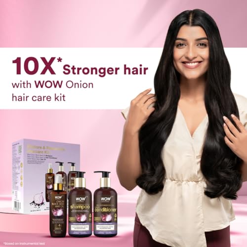 Get strong and lustrous hair with WOW Skin Science onion black seed oil shampoo conditioner & hair oil. This ultimate onion oil hair kit may help tackle hair loss scalp buildups and dull weak hair. These three products formulated with natural ingredients helps strengthen hair follicles and clarify blocked roots. It is infused with red onion extract with strong properties that help protect the scalp and hair promotes blood circulation to the roots. Black seed oil rich in fatty acids nourishes scalp and roots. Sweet almond oil keeps the scalp and hair conditioned. It can be used to hydrate the roots and scalp and help make hair look healthy and lustrous. Red onion extract black seed oil aid in rejuvenating tired scalp and weak hair. Suitable for all hair types this shampoo cleanses and moisturizes your hair and scalp and helps to improve hair texture. Use this ultimate onion oil hair kir to help improve hair texture and strengthen the strands. HOW TO USE WOW SKIN SCIENCE ONION BLACK SEED HAIR OIL : Pump out 2 tablespoons of the onion hair oil. Gently massage onto scalp and work from root to tip. Leave on for at least 30 min preferably overnight. Shampoo hair. Finger comb and air dry.