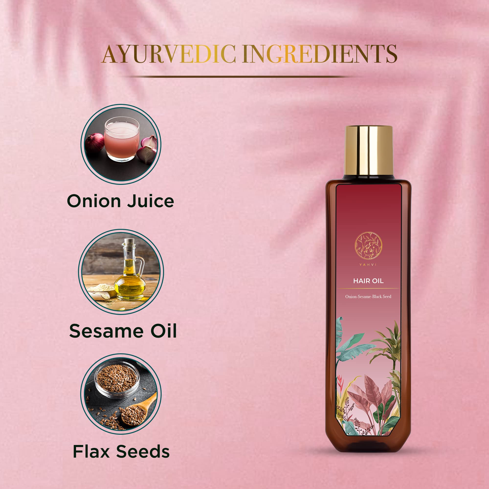 Blended With All Natural Ingredients Like Aloe Vera Red Onion Oil Bhringraj & Amla Etc Yahvi Onion Shampoo Address All Your Hair Concerns In One Go. Enriched with potent Ayurvedic herbs the Yahvi Onion Oil nourishes your scalp and strengthens your hair. A superfood for your hair flaxseeds are rich in omega 3 fatty acids that help in combating dandruff and an itchy scalp along with other hair concerns. An ingredient rich in sulfur onion juice activates your hair follicles to promote stronger hair growth and reduce hair thinning. Fights Multiple Hair Issues- Dandruff Dry & Damaged Hair Hair Fall Hair Thinning. Rejuvenates Tired Scalp Weak Hair & Promotes Blood Circulation. It Also Helps To Improve Hair Texture And Strengthen The Strands. Ideal for All Skin Type The Formulation of Yahvi Shampoo Contains Gentle Ingredients That Rid Your Hair of Pollutants Dirt While Giving It a Gentle Head Wash. The Idea Of Beauty Beyond Being Skin Deep Packed With The Goodness Of Nature. We The Yahvi Serves Beauty At Its Most Real Thatâs Why Our Entire Range Are Paraben Free Cruelty Free & GMP Certified.