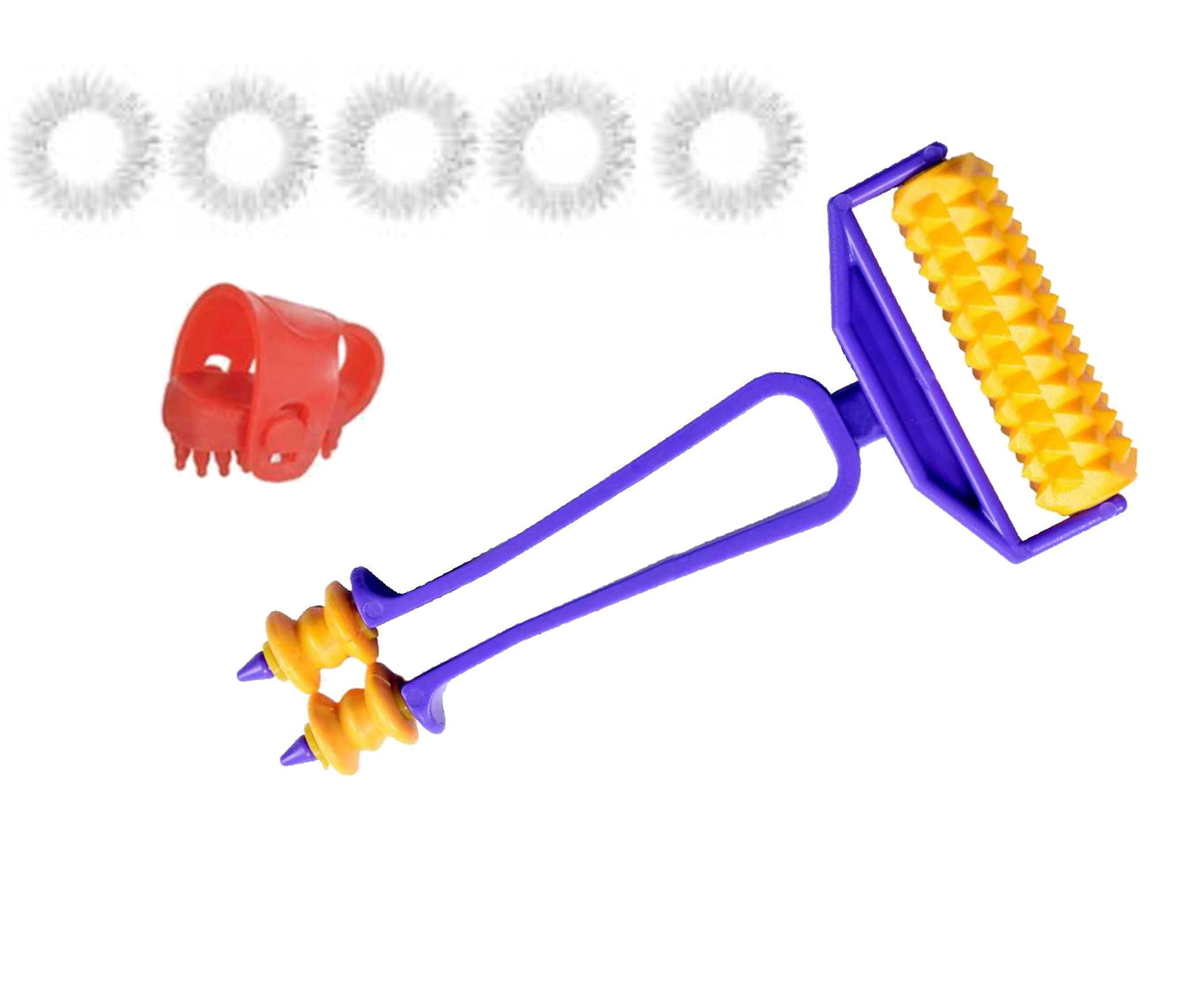 HomeHealth & PersonalHealth & WellnessAcupressureNETCLUB Acupressure Karela Roller Mini roller With finger roller care point Handle For Full Body Massage With Acupressure Massage 5 Sujok Ring 1 thumb pad Massager