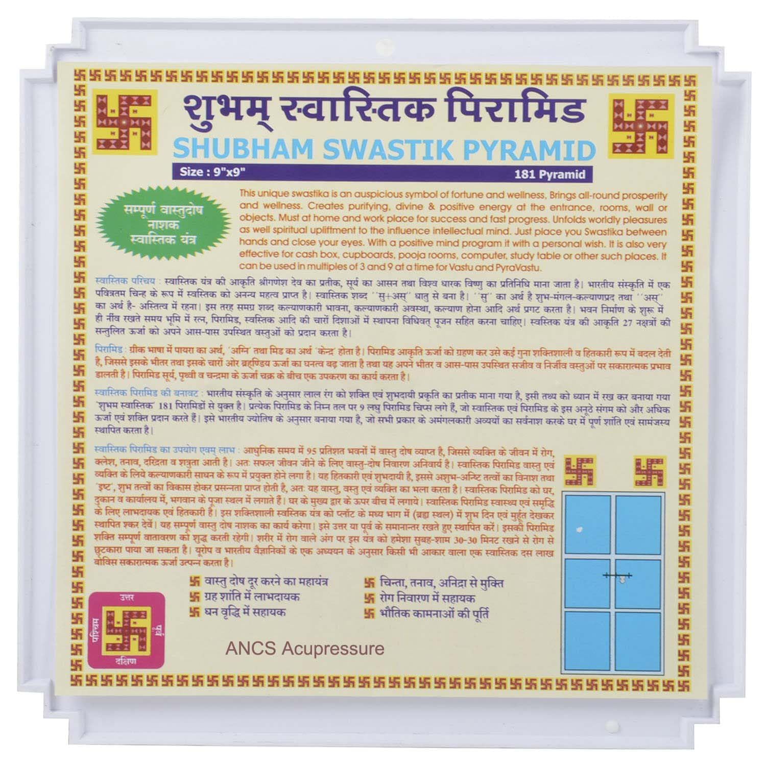 Short description :Mini swastik brings all-round prosperity & wellness. It creates purifying divine & positive energy at the entrance of the rooms. It is must for the home & workplace for success & fast progress. This unfolds worldly pleasure as well as spiritual upliftment. It harmonizes the internal & external environment to influence the intellectual mind. Long description : Mini swastika (Jiten Pyramid) is a unique and powerful symbol now in a very attractive combination of red and white with a gold energy radiator disc in a colourful pack and portable size & easy to use. Mini swastika has got the added power of 75 white pyramids and 17 red pyramids in the symbol of swastik. Pyramid grid and a gold energy radiator at the bottom with a 2 way sticker at the back. How to Use Just place your swastik between hands & close your eyes & with a positive mind programme it with a personal wish. Now stick it wherever you require. Pyra vaastu swastika mini is ideal for all doors. Fix on the door or on the door frame. It is also very effective for cashbox cupboards puja rooms computer study table or other such places. It can be used in multiples of 3 & 9 at a time for vaastu & pyra vaastu.
