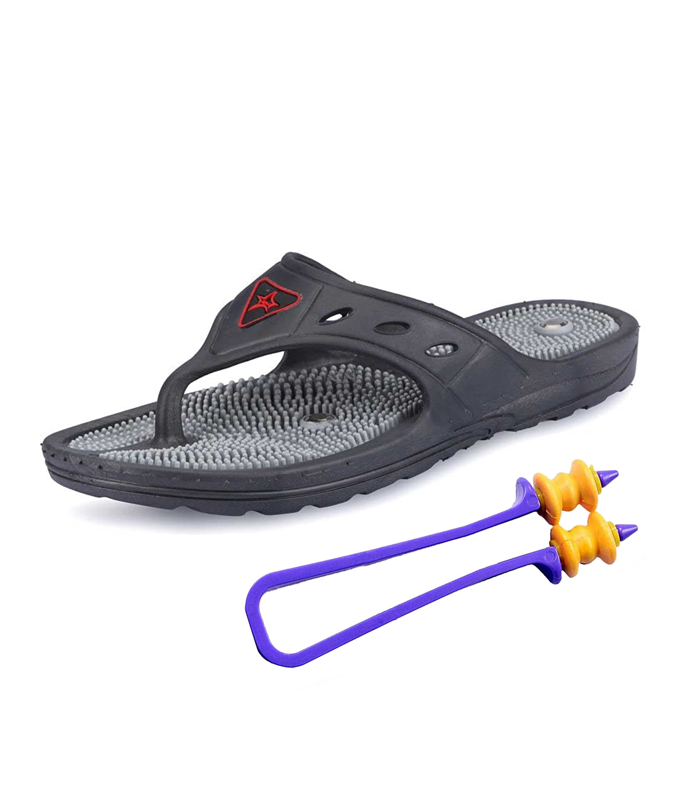 NETCLUB Acupressure slipper acupressure sole with magnetic power flip flops acupressure foot feet massager slippers for men women children chappal blood circulation body massager (7 GREY)