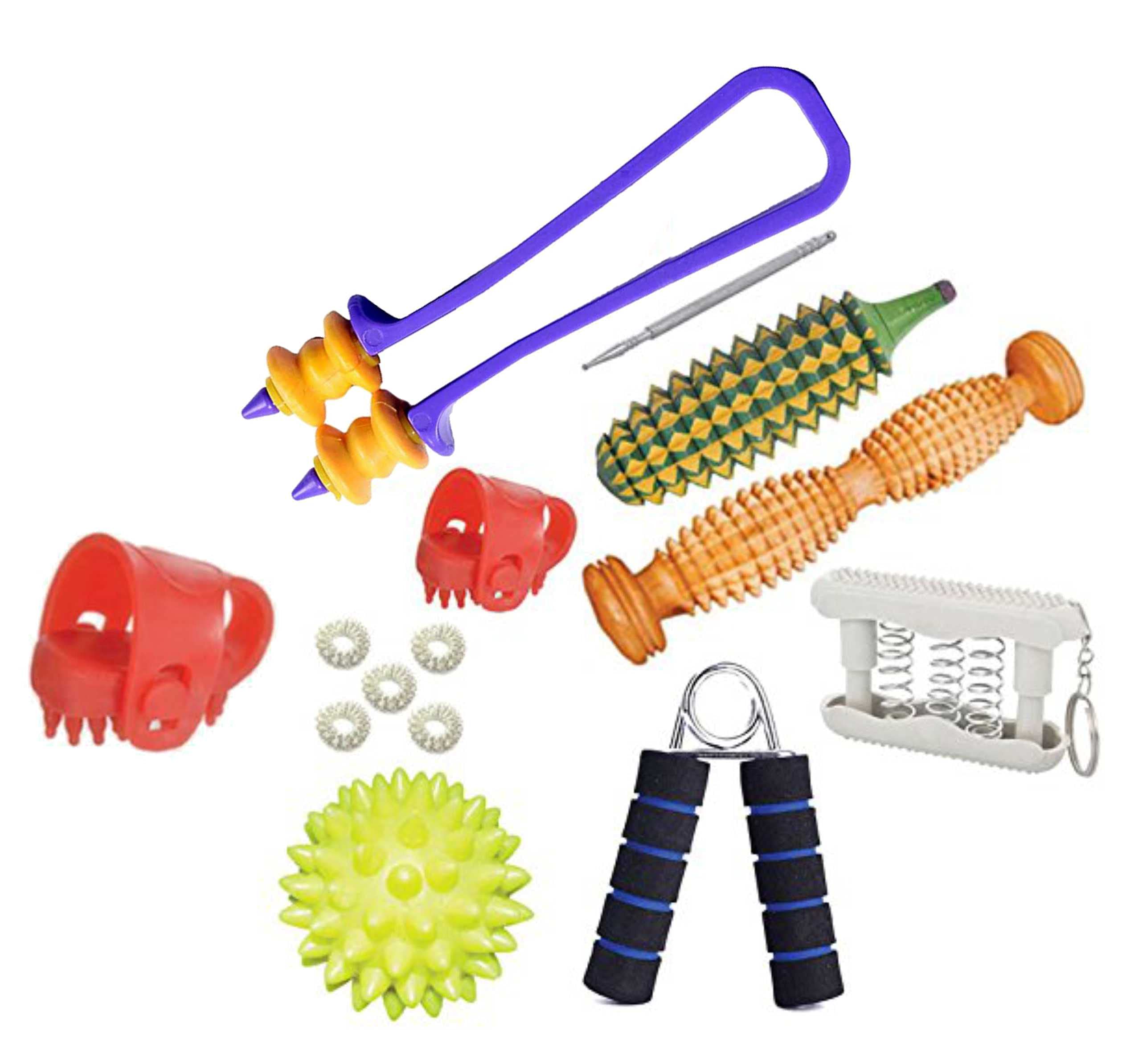 Energy Ball (Pointed) - Best for middle part of palm and finger relaxation. Pointed ball give us sharp and fast massage. Improves digestive system & effective in palm sweating. It is made by high quality material. | Fingure Messager for Beautiful Hand - Helps to accelerate blood circulation Roll-shaped with ergonomic design Allows you to enjoy a massage at home conveniently Makes your fingers more slender and keeps the hand skin smooth | Hand Grip (Big) Soft - Hand grip strengthener is ideal for improving strength power and speed in the wrists fingers and forearms. Ideal for athletes musicians rock climbers golfers and tennis players. | Jimmy Steel - Silver - For special Su-Jok points f your finger. Use it in Su-Jok treatment. Essential tool for Su-Jok Therapist And Acupressurist. | Pocket Exerciser - It is compact effective & small equipment with tiny Acupressure points. It helps to reduce Headaches mental tension sinuses insomnia depression increase memory improves digestion and cures stomach disorders. | Sujok Ring (Silver) - For pressure of your Fingers Points. Use: Roll it in finger with mild pressure. Designed for thorough stimulation of the finger toes. | Foot roller (Wooden) - Foot Roller for foot relaxation and pain relief. Press & roll your foot over the roller daily 5-10 minutes and warm up your leg. It helps in Arthritis sciatica leg pain gouts and improves digestive system. | Karela Roll (Wooden) - For special point of your Hands. Roll in your hands 5 to 10 minutes daily. Stimulates Acupressure points activates blood circulation tiredness freshness & total health. It is made up of standard wood. | Thumb Jimmy - For pressure by Thumb. Use thumb jimmy to press the reflex point of the body. It Stimulates the blood circulation recharge the organ. Cautions: Do not use any acupressure tools on broken sore or bruised skin. Avoid using extreme pressure. If in doubt seek medical advice before use.