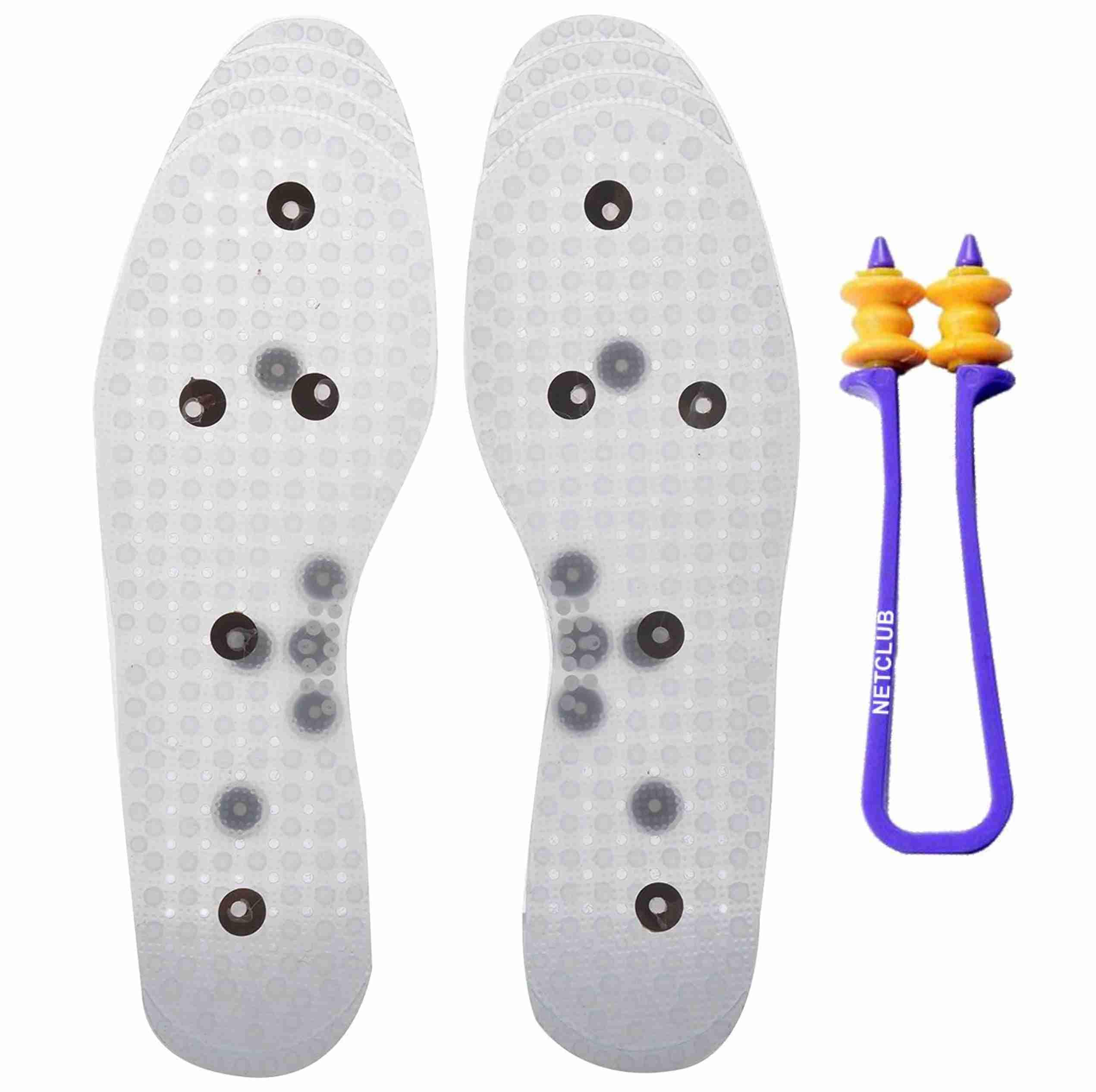 NETCLUB Acupressure Unisex Magnetic Shoe Insole Comfort Pads for Foot Massage - White with free finger body massager