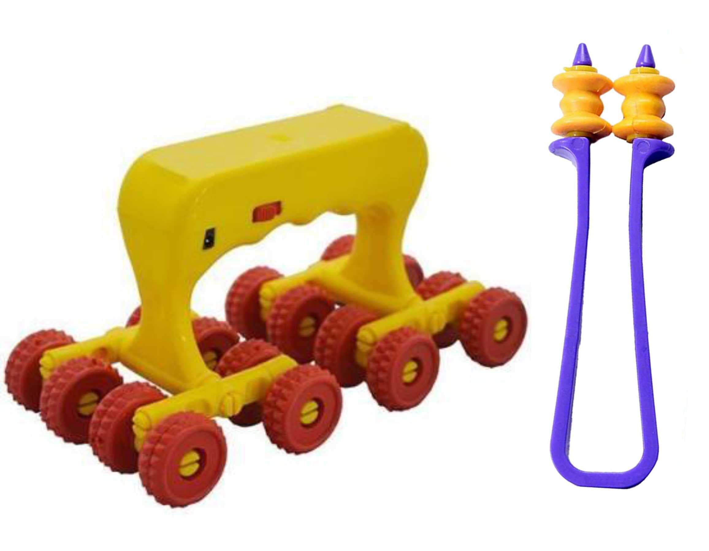 Body King Massager Doctor Relax 16 Wheel - Body massage full body massager new acupressure roller massager advance massager it has in built 16 acupressure roller it improves the metabolic activity of each cell which enriches the oxygen level and blood circulation. Benefits and features: health acupressure roller massagerâs hand model gives instant relief from backache neck pain cramps and shoulder pain improves blood circulation. Pressing the heel points on radial rings can be valuable in treatment or sciatic leg pains. Cramps heel pain and knee pain as well as reproductive organs disorders. Improves blood circulation warm ups the body before an exercise routine it smoothens away the pains and relieves the fatigue adjust the metabolism and come to the equilibrium use 2 x AA batteries (not included) or works with nokia mobile charger (not included) double speed selector switch.