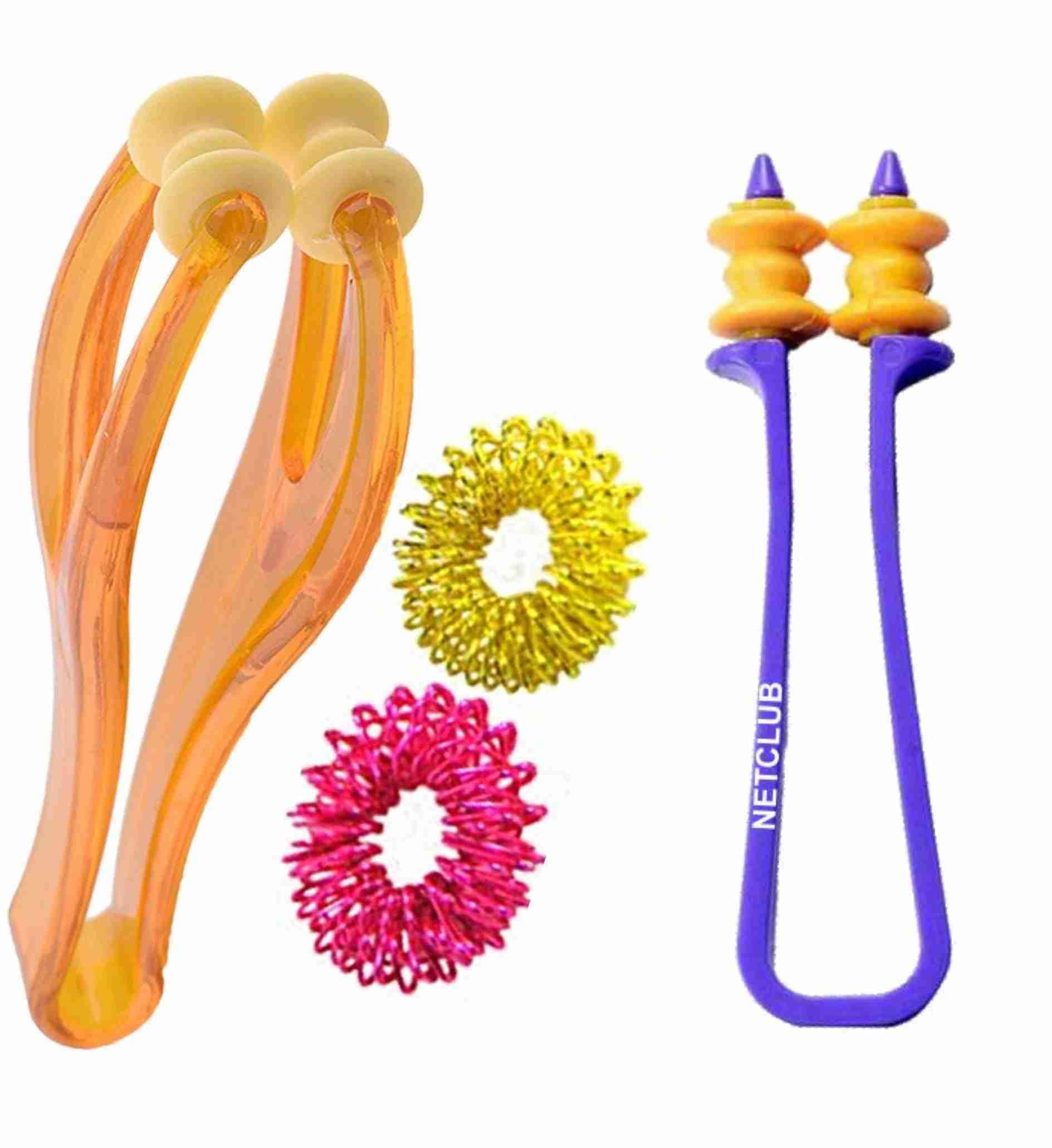 The acupressure massage therapy stimulates and activates the body's own energies to help fight illness and restore harmony. Acupressure has a lot of advantages for physical spiritual and mental health. It helps to relieve pain reduces strain increases blood circulation and provides a relaxing effect to the body. In a nutshell acupressure involves the simple act of applying pressure to various points on our bodies and it does wonders to alleviate the aches pains tension and built up stresses on our bodies. Acupressure works by stimulating the thousands of nerves in our hands and feet thereby increasing blood flow. Your hands are the most useful part of your body. Allow them to relax and get a little massage anytime anywhere with H56 Finger Massage Stick. This compact handy massager from the house of Alag Enterprises helps you get your fingers and palms stress free after a long days work. Helps in toning up muscles removes morning stiffness of fingers as it helps in blood circulation keeps fingers looking young. The rollers are made of rubber and the handle is plastic made. In the starting the roller might be a little tight but slowly and gradually it will loosen out and you will feel comfortable. Usage : Place your finger in between the rollers and massage it gently to & fro. You can also use it for massaging your palm or the skin between thumb and index finger. For best results use it in the morning as well as in the evening to feel energetic and relaxed. Light weight Easy to Use Anytime Anywhere.