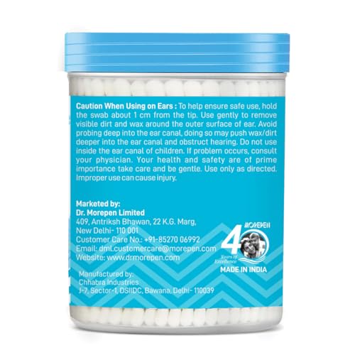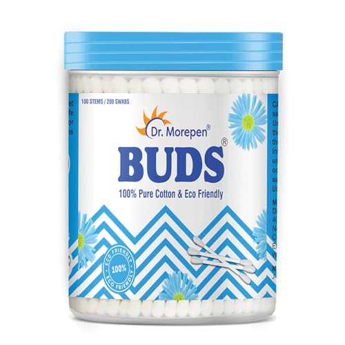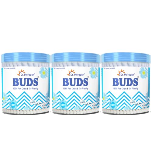 Dr. Morepen BUDS 100% Pure Cotton & Eco-Friendly Paper Earbuds - 100 Cotton Buds Pack of 3