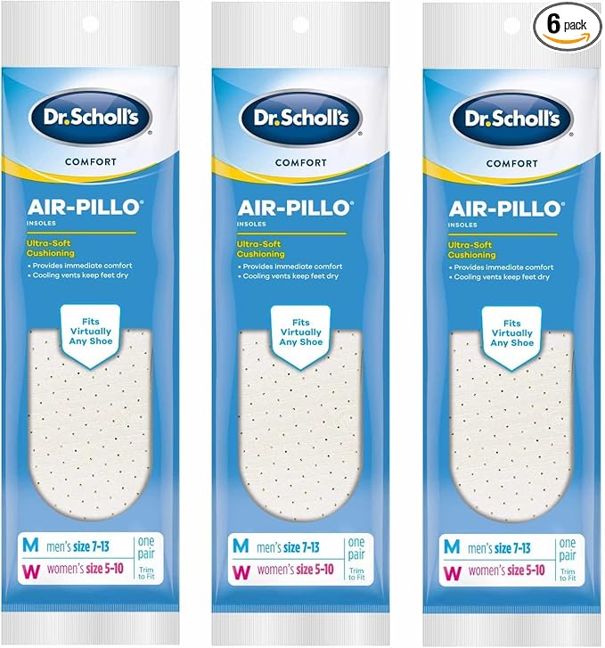 Dr. Scholl's Insoles Air-Pillo Cushioning with Memory Foam - 3 Pairs (Men's Sizes 7-13 & Women's Sizes 5-10)