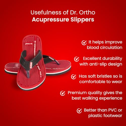 Dr. Ortho Acupressure Slippers specifically designed for women improve blood circulation promote relaxation by stimulating pressure points on the foot reduce foot pain and promote better well-being. These slippers are just perfect for women who are looking for comfort as well as care in their slippers. Strategically designed acupressure nodes on the footbed of the slippers stimulate pressure points and help promote overall well-being reducing stress and boosting the energy level of the body.