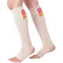 Varicose veins are veins that have become en d and tortuous Characterized by aching pain heaviness inability to walk or stand for long hours thus hindering work ankle swelling and a brownish-blue shiny skin discoloration near the affected veins. Quadriceps strain is an inflammation and pain in the front of the thigh. It is common in sports like running jumping and foot ball. It is caused by trauma fatigue and exercise. It is characterized by pain swelling and warmth over quadriceps muscles muscle spasm or tightness weak ness and fatigue. Flamingo Below Knee Stockings gives you a great relief.