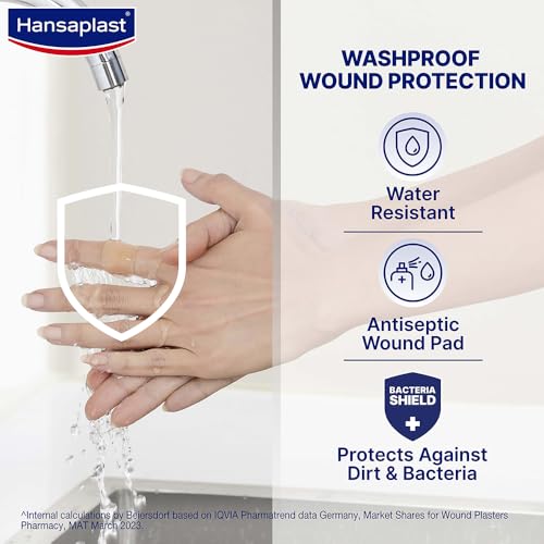 Hansaplast Antiseptic Washproof Bandage for injury & wounds | 100 Strips | First Aid | Water resistant | Provides Comfort to the Wound in Water | For Kids & Adults
