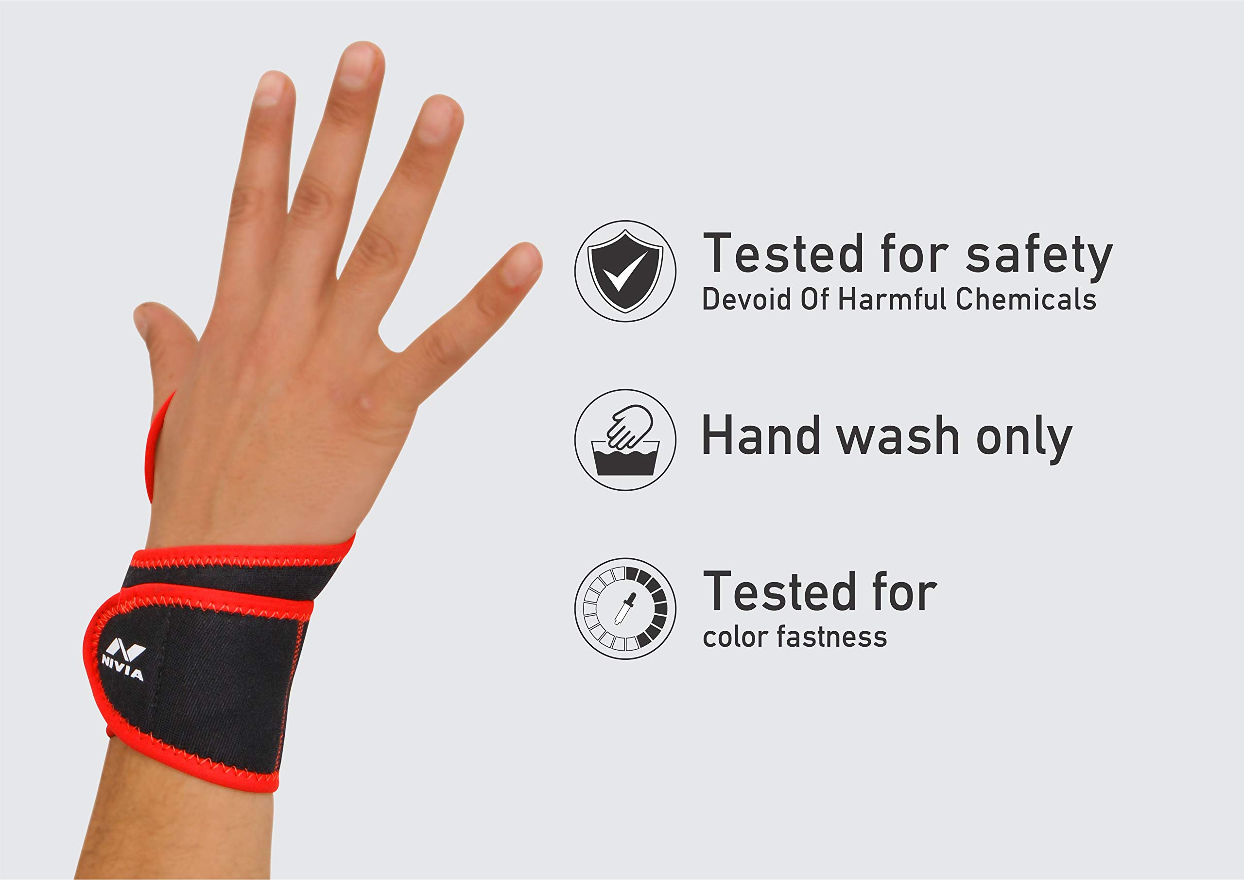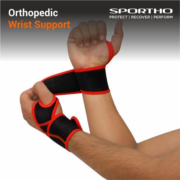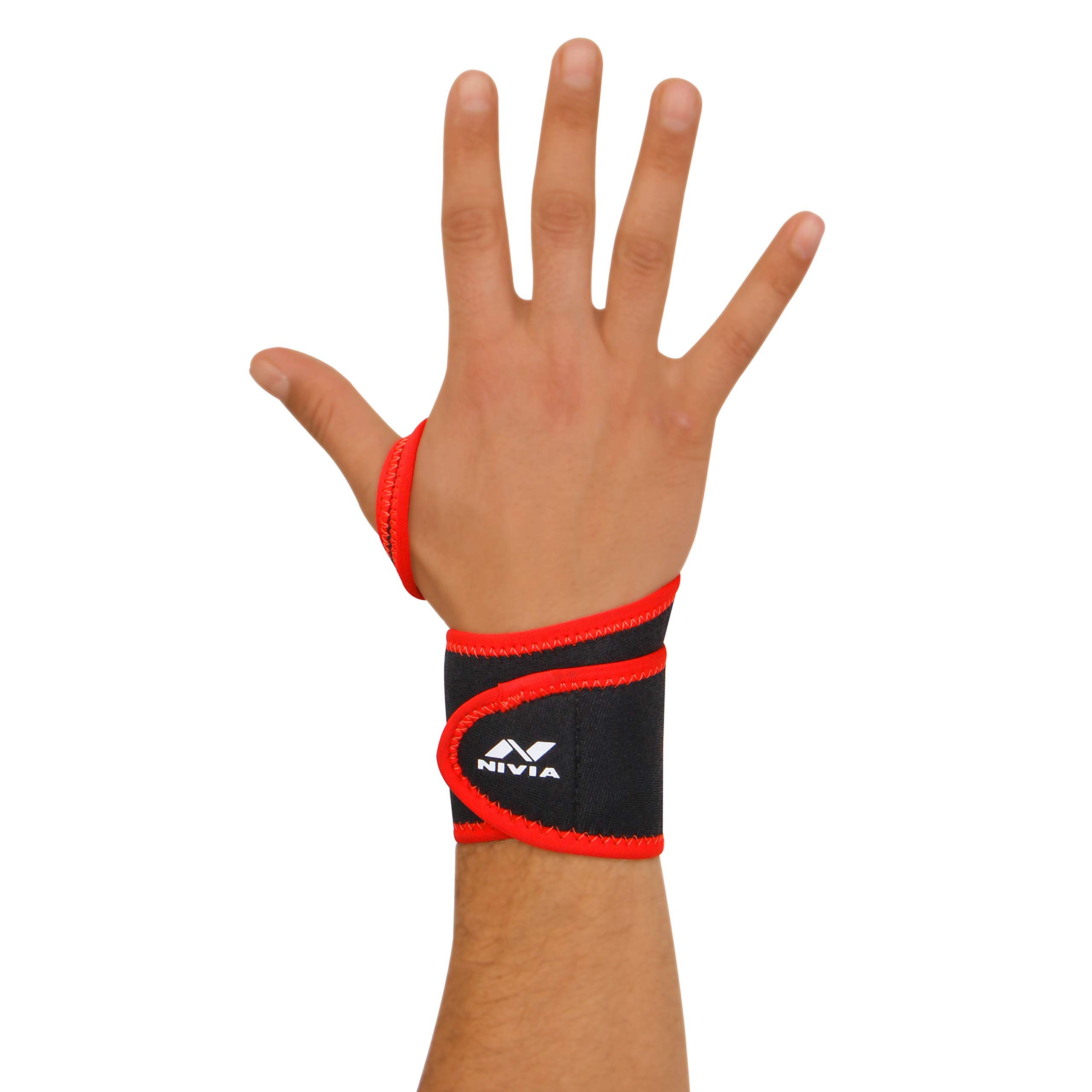 HomeHealth & PersonalHealth & WellnessHealthcare DevicesNivia Performance Orthopedic Wrist Support for Gym with Thumb Support Wrist Supporter for Men and Women Weightlifting Gym Accessories Made of Neoprene One Pair (Free Size Black/Red)