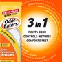 Odor-Eaters Ultra-Comfort Insoles destroy odor with super-activated charcoal baking soda zinc oxide and two powerful odor-blockers. The insoles draw in perspiration so feet stay drier and feel more comfortable. Ultra-Comfort Insoles provide a slim comfortable fit that "cushions without crowding". This product is one size trim-to-fit.