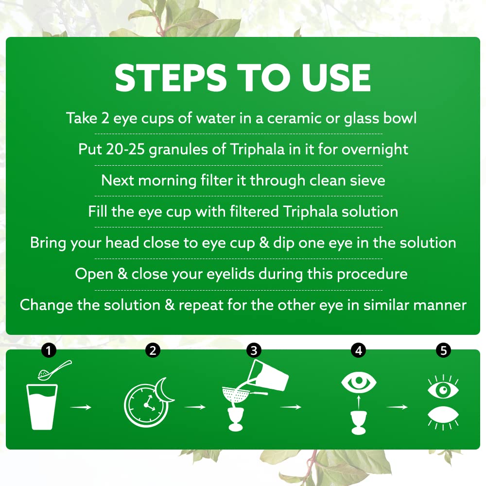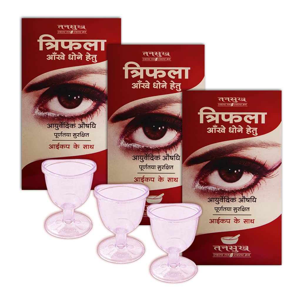 Tansukh Triphala Eye Wash Pack of 3 (Each 100 Gram) With Triphala Granules & Free Plastic Transparent Eye Wash Cup/Fits With Eye Contour Smoothly/For Tired Polluted & Eye Irritation Herbal Remedy