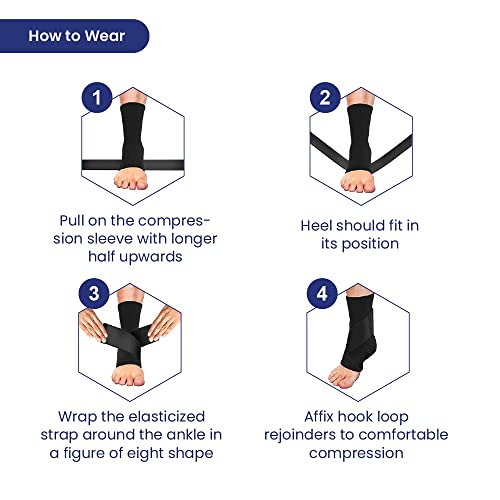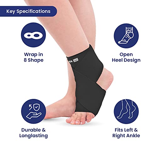 TATA 1mg Ankle Binder | Ankle Support for Pain Relief, Injuries, and Inflammation | Ankle Protection Guard Post Cast Care and Post Operation for Unisex (Black, Pack Of 1, Large)