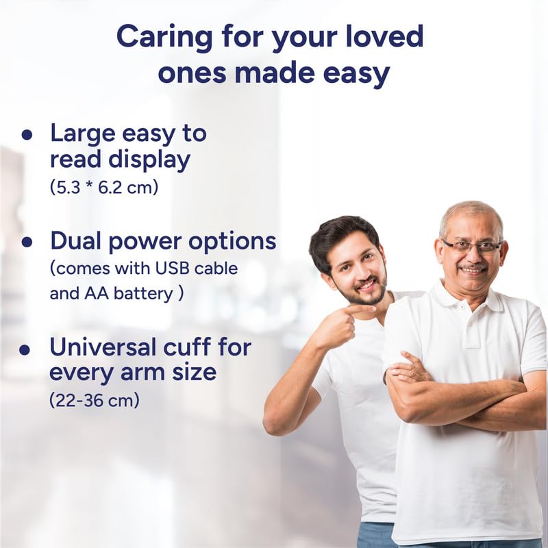 HomeHealth & PersonalHealth & WellnessHealthcare DevicesTata 1mg Blood Pressure Monitor | Digital BP Check Machine For Home | Fully Automatic Upper Arm Style BP Monitor | With USB Cable & AA Battery | Large LCD Display | Memory 90 Sets For 2 Users, White