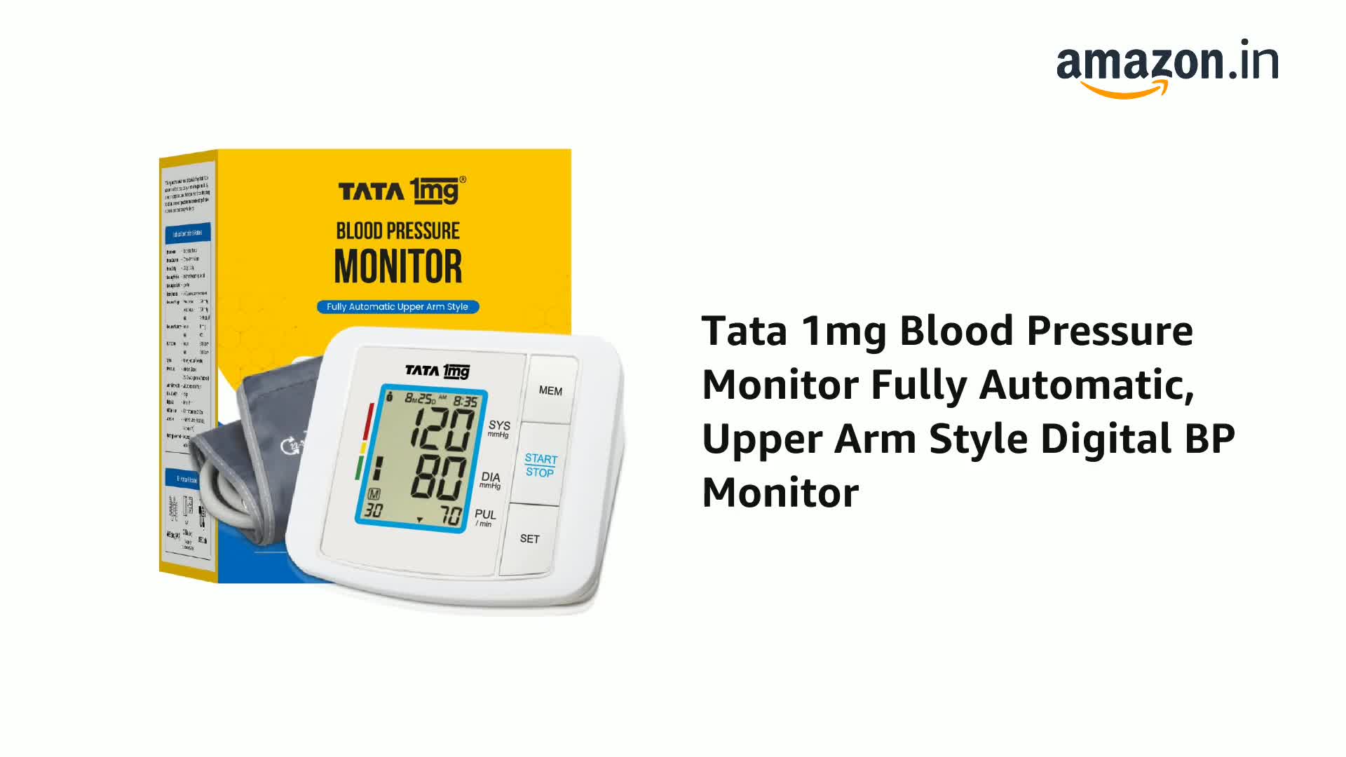 Tata 1mg Blood Pressure Monitor Fully Automatic Upper Arm Style Digital BP Monitor