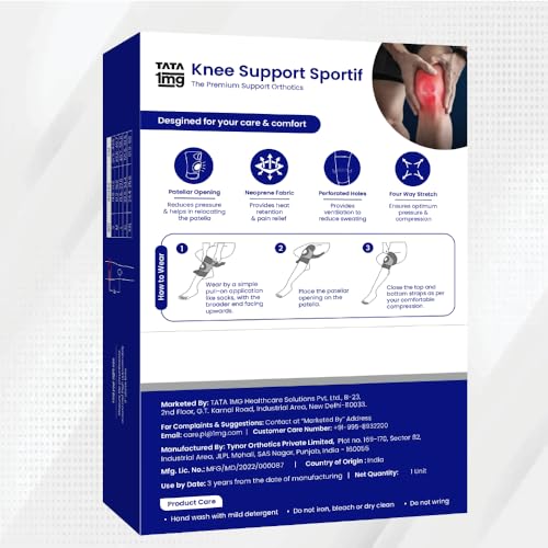 Tata 1mg Knee Support Sportif (Neoprene) is a premium orthotic support designed to enhance the stability and comfort of your knees. Made from neoprene fabric with a four-way stretch it delivers optimal pressure and compression while retaining body heat to provide therapeutic warmth in the targeted area. The integrated Patellar opening reduces patellar pressure and aids in patellar realignment. This product is specially tailored for post-surgical rehabilitation and managing knee injuries making it an ideal choice for effective knee support.