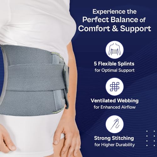 Tata 1mg Lumbar Sacral Belt For Back Sprains, Strains, & Muscle Spasms, Unisex With 5 Flexible Splints for Lower Back Support, (Fits 30-44 inches Waist Size),Pack Of 1