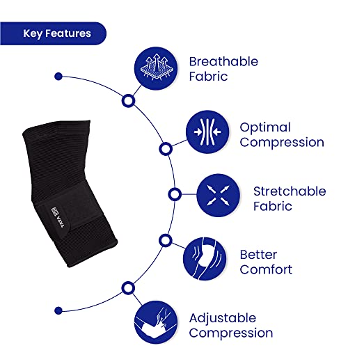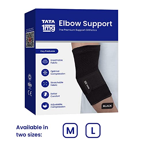 TATA 1MG Nylon Elbow Support Elbow Brace For Relief From Inflammation And Stiffness In The Forearm And Elbow Joint (Pack Of 1 Black Size: Medium)
