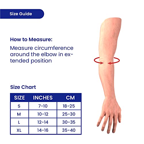 I received a damaged product where all the nylon fabric was coming out.I ordered size M for my 11 inches elbow circumference but it was very tight and uncomfortable. I would suggest to go with one size larger. Asked for refund waiting hopefully to get it. Will update once it's done.