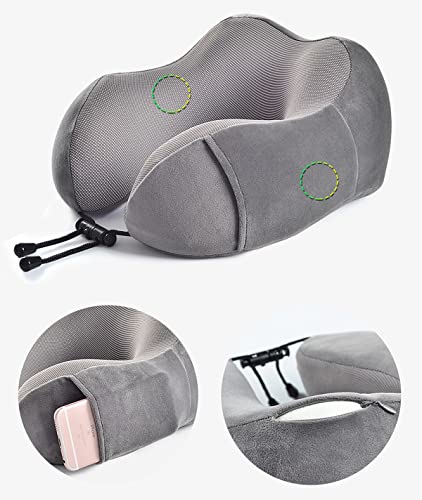Travel Neck Pillow Memory Foam Rest Cushion Support For Travel Flight Car Train Airplane Sleeping Neck Pillow For Men And Women (Grey)