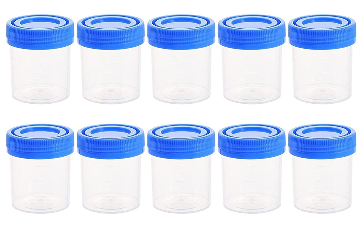 Urine Container Sample Specimen Collector Plastic Container Sterile 50ml (100 Pieces, Blue)