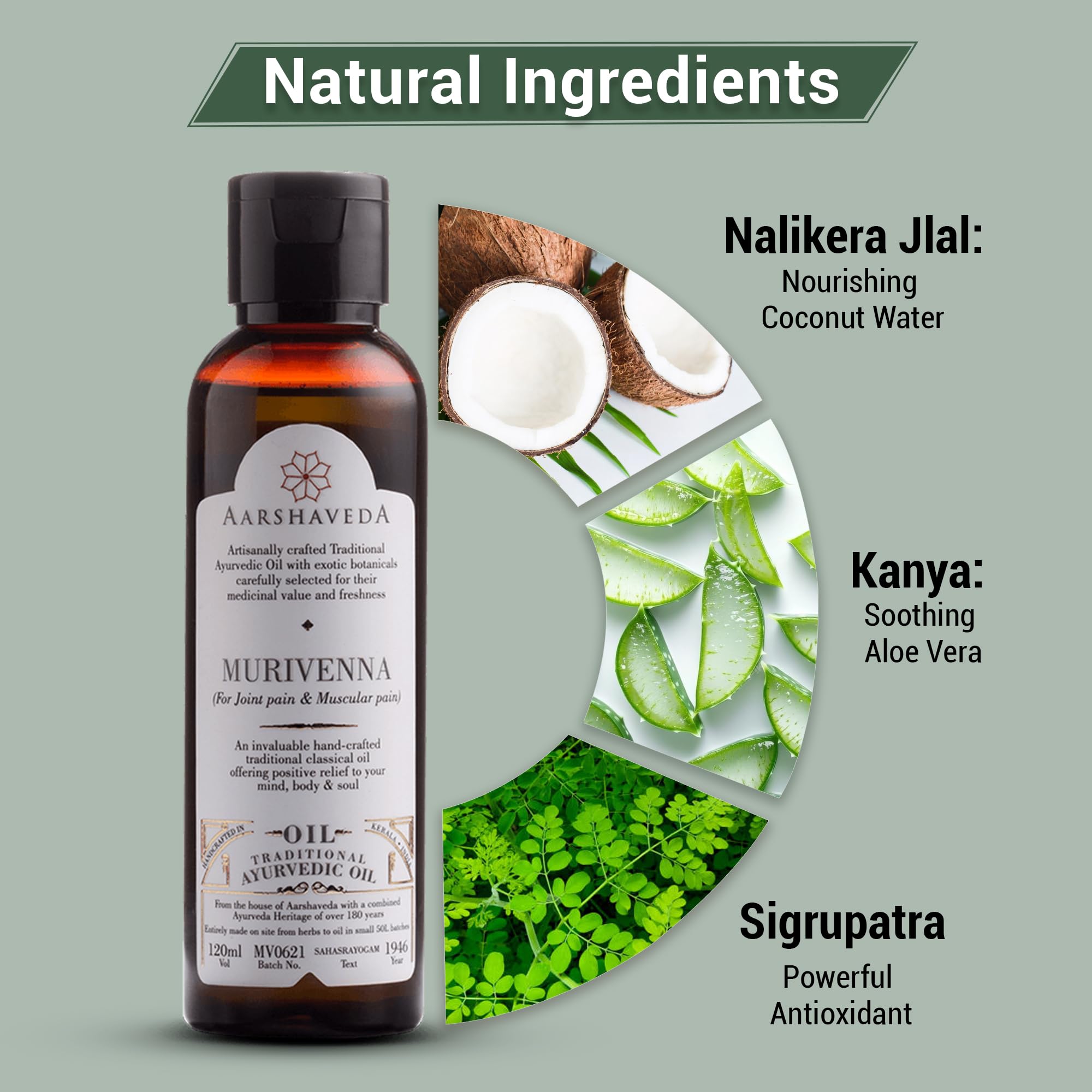 Aarshaveda Murivenna Oil For Fast Joint Pain Relief from Knee(120ml), Back Pain & Joint Pain, Heals Wounds Ayurvedic Oil, 100% Traditional Ayurvedic Oil With Exotic Botanical Formula With Fast Action.
