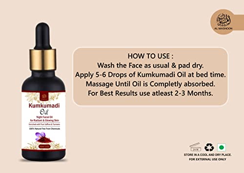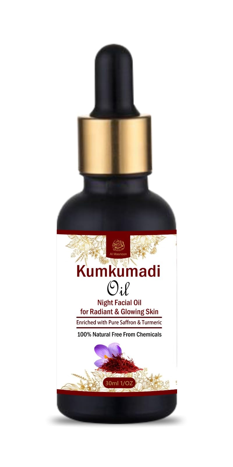 Kumkumadi Oil Night Facial Oil is a luxurious and effective solution for achieving radiant and youthful skin. Enriched with pure saffron and turmeric and blended with nourishing olive oil and almond oil this 100% natural and chemical-free facial oil offers deep nourishment and rejuvenation. Its powerful ingredients work together to enhance skin tone reduce signs of aging and provide a luminous glow. Perfect for all skin types this night facial oil helps to repair and revitalize your skin while you sleep ensuring you wake up with a refreshed and glowing complexion. Embrace the natural beauty benefits of Kumkumadi Oil and enjoy a holistic approach to radiant and youthful skin.