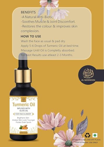 Reveal your natural glow with our 100% Natural Turmeric Oil for Face & Body 30ml infused with the goodness of pure Olive Oil. This powerful blend harnesses the ancient healing properties of turmeric known for its skin-brightening anti-inflammatory and antibacterial benefits combined with deeply nourishing olive oil that hydrates and soothes the skin. Crafted with care this lightweight non-greasy oil is perfect for daily use on all skin types. Whether you're looking to brighten dull skin reduce dark spots or achieve a more even skin tone this natural elixir works gently yet effectively to restore your skin's youthful radiance. It also supports clearer skin by combating breakouts and calming irritation.